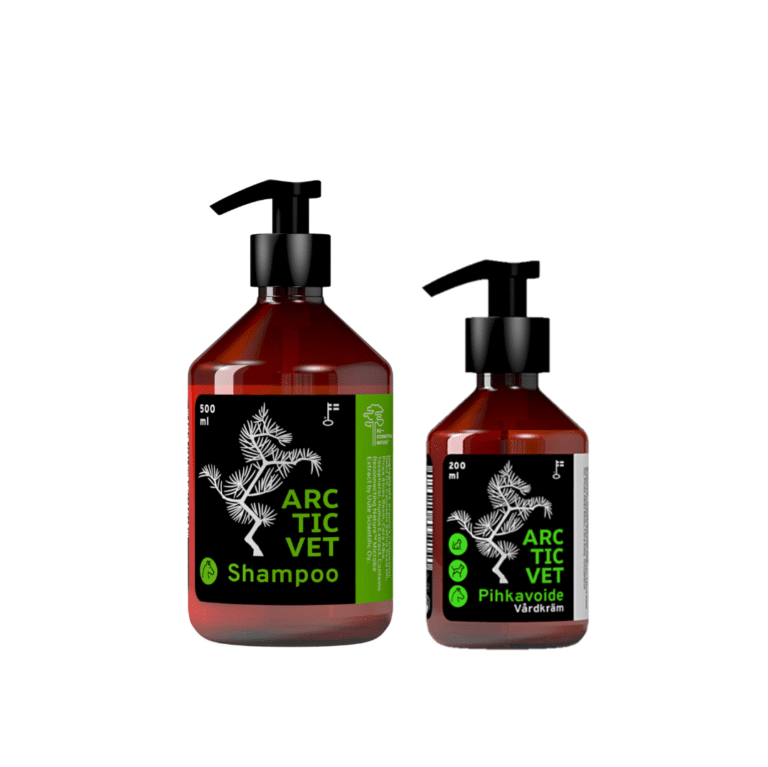 Hoitoa täydentää ArcticVet Pihkavoide, joka sisältää korkealaatuista suomalaista kuusenpihkaa. Kuusenpihka tunnetaan sen antibakteerisista ja ihoa uudistavista ominaisuuksista. Voide muodostaa hengittävän suojakalvon ärtyneelle iholle, edistää paranemista ja ehkäisee uusien iho-ongelmien syntymistä.